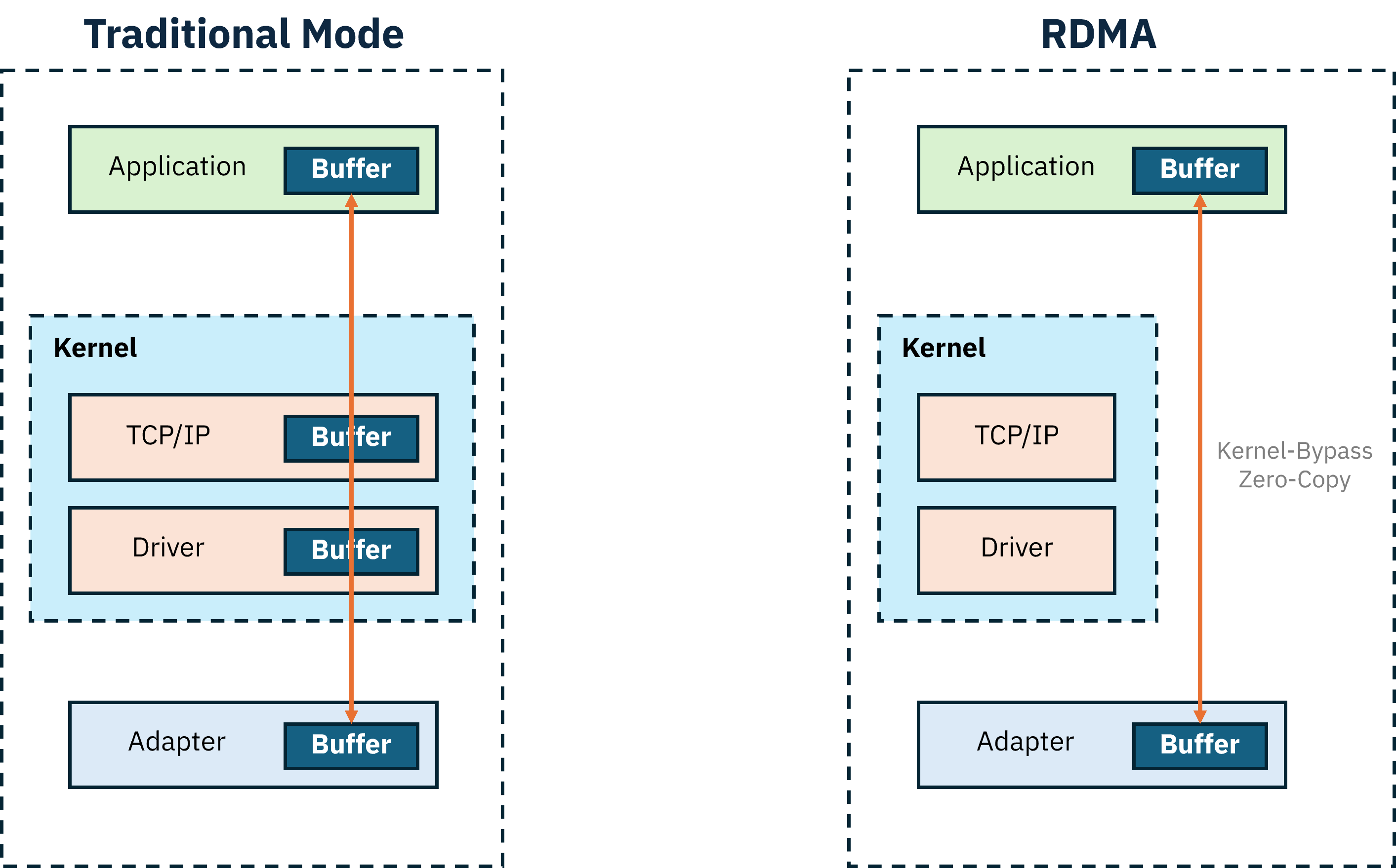 이는 데이터 복사 과정을 제거하고(zero-copy), 커널영역을 우회하여(Kernel-Bypass) 성능을 극대화시킬 수 있다는 뜻입니다.